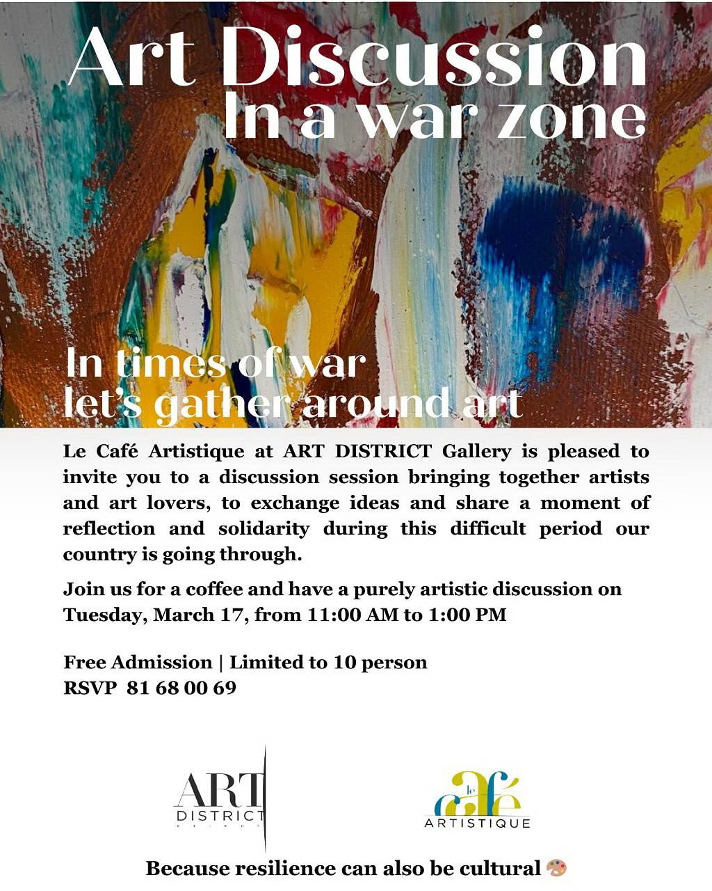 Art District Gallery is hosting a discussion session as part of its Artistic Café, bringing together artists and art enthusiasts for an open conversation around art during challenging times.