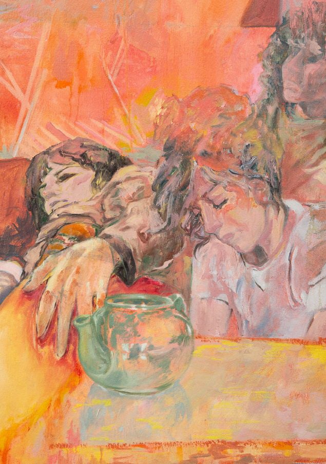 The exhibition brings together new paintings that continue Kiwan’s exploration of domestic interiors. In particular, she focuses on tenderness and proximity.
