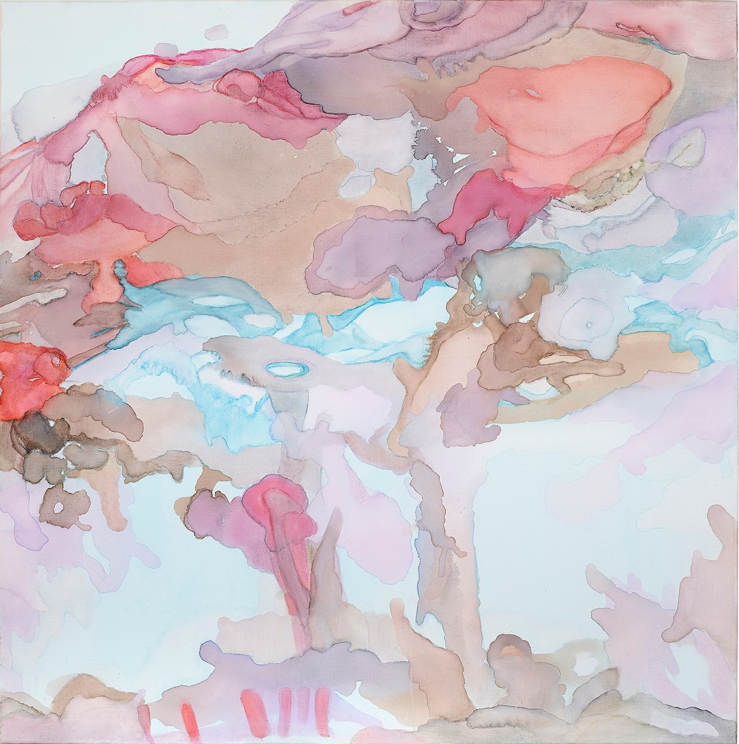 In Doreen El Zein’s world-making, peaceful shapes drift toward form without ever fully settling into the recognisable. Fluid translucence runs throughout her work. It remains indifferent to shifts in colour or tone and responds instead to temperature, oscillating between warmth and cold. Fire and water shape these spaces. Heat smoulders at their core and grazes the edges of caves and watery hollows. Her gentle painterly language carries an undercurrent of intensity. Through sustained looking, depth gradually emerges, as inner and outer spaces coexist. If her strength lies in the perpetual morphing of form, it also lies in her ability to reconcile calm with intensity—the darkness held within light.